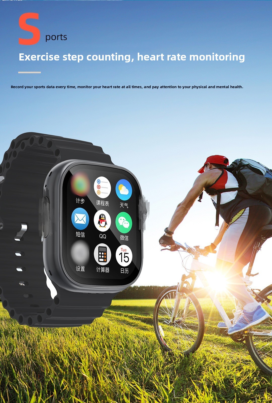 Health Monitoring: Heart rate monitoring, blood pressure measurement, sleep monitoring, and blood oxygen detection.