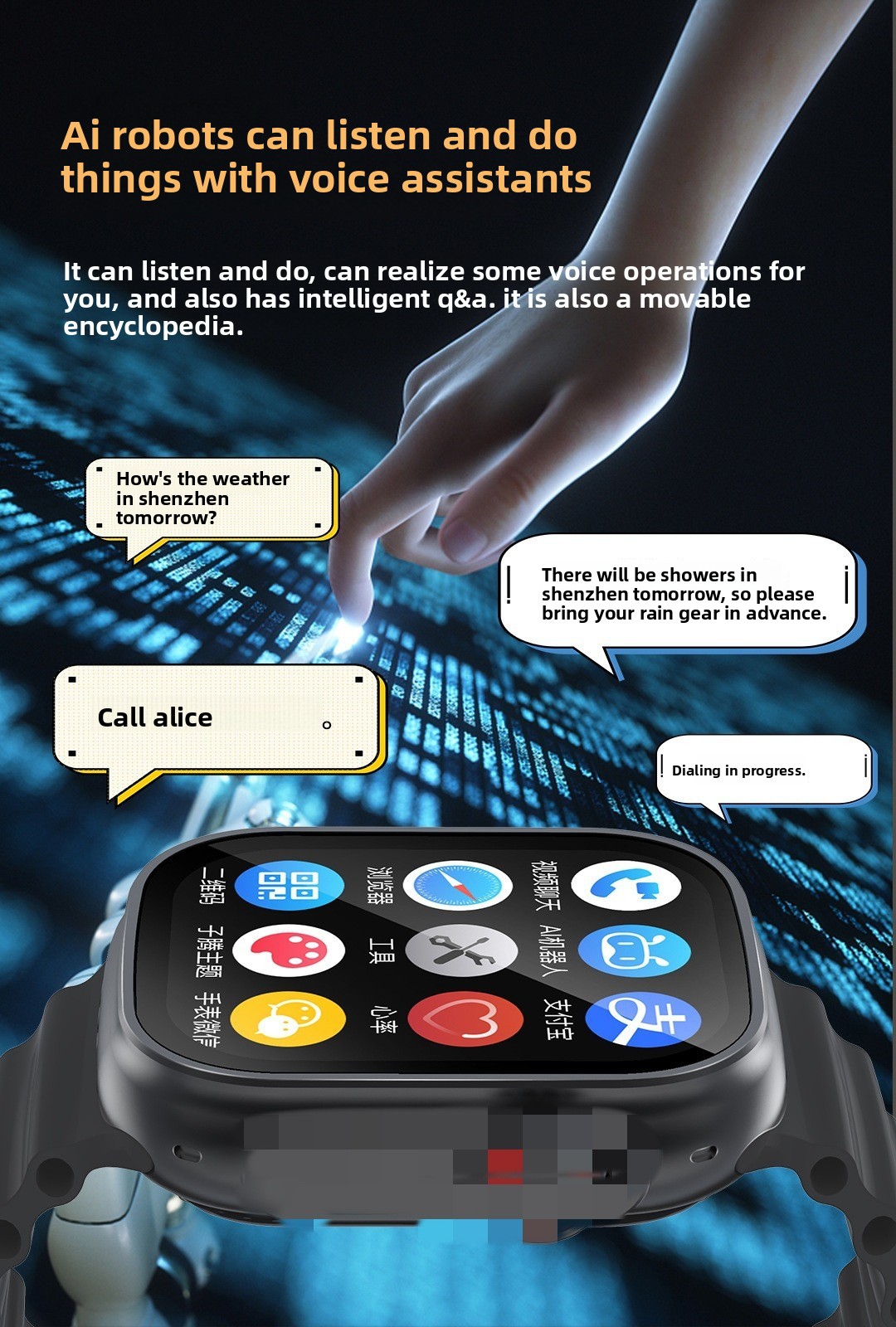 Functions: Step counting, body temperature measurement, social entertainment, and photo-taking.