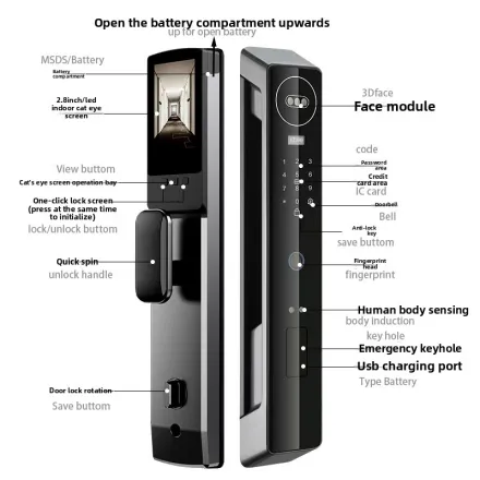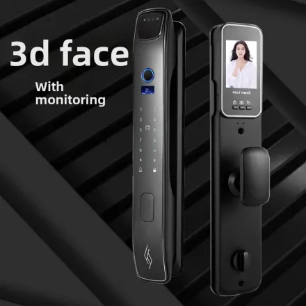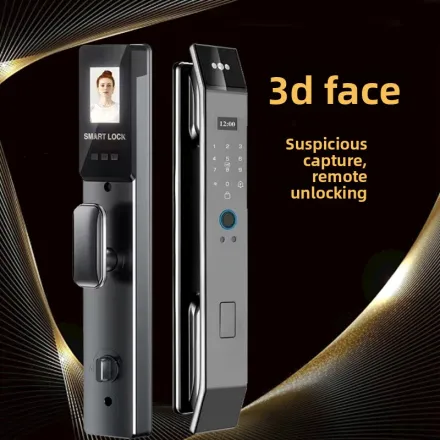 This smart door lock allows you to unlock your door using your fingerprint, face, password, or smartphone — giving you full control and peace of mind.